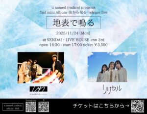 2025年11月24日(月・祝)宮城・LIVE HOUSE enn 3rdで開催される「u named (radica)3rd mini album 『宙から視る』release event 『地表で鳴る』」の出演アーティストが決定しました!!